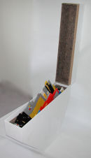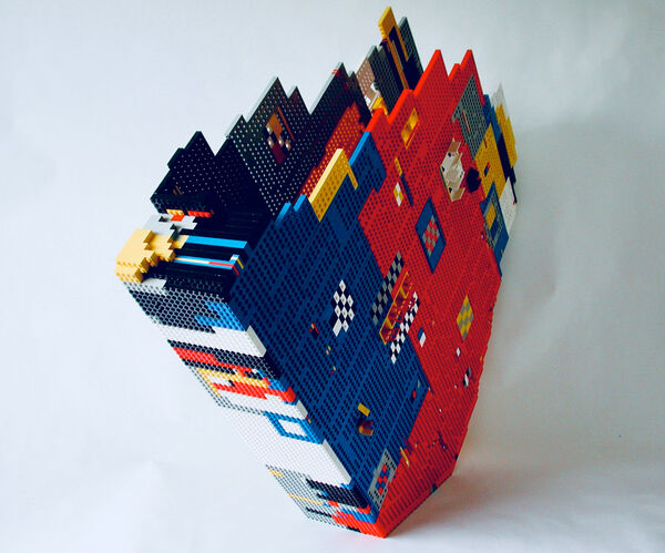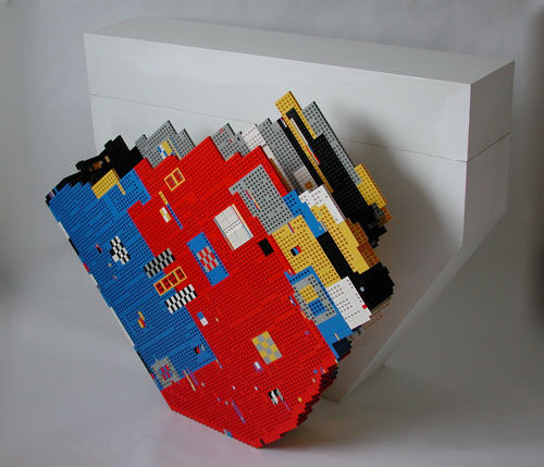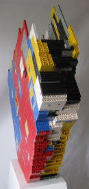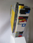 I have been saving Lego since I was involved in “The Art of Lego” exhibition: always intending to make something which would exploit the Lego Technic colours & shapes. The individual pieces are set at 45º to give a dynamic structure to the form and a base which sits more lightly on the ground.