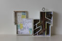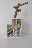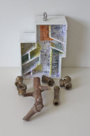 This is a 'Political Policy Box' and makes up into a nonsense object: a cross between a mug tree and plant. The components are contained in the box, taken out and can be arranged in a variety of ways according to your political ideology. The branch is fixed either inside or outside the box by means of the screw ring whereupon the fittings can be distributed according to your political predilections.